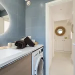 This apartment has a fully equipped kitchen along with an oven and a dishwasher.